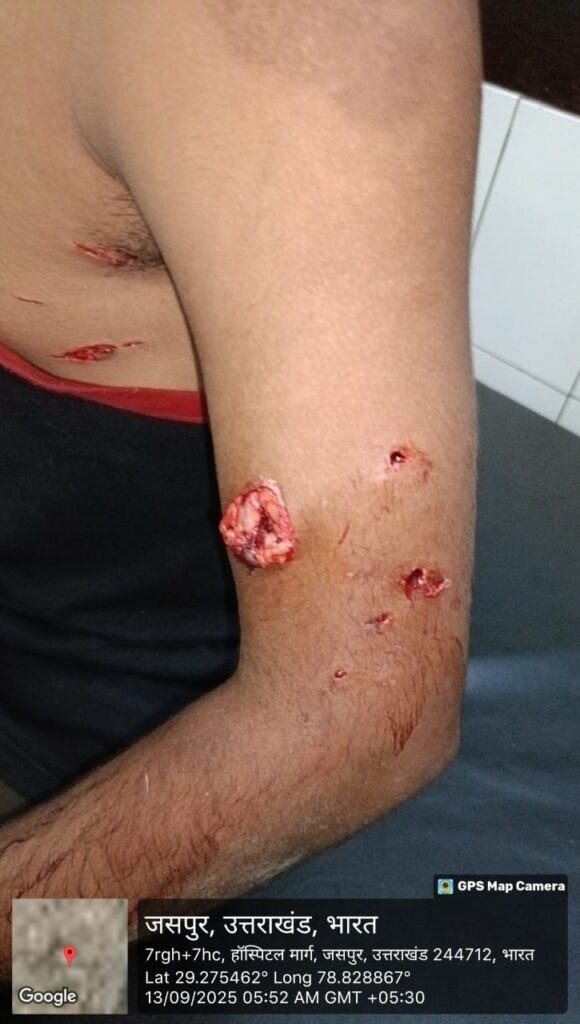 मिली जानकारी के अनुसार घायल युवक बिट्टू 28 वर्ष निवासी ग्राम सिपका ने बताया कि वह सुबह साढ़े छह बजे करीब घर से बाइक पर सवार होकर पतरामपुर के लिए निकला था।कि पतरामपुर वन विभाग की चौकी के पास गुलदार ने उस पर हमला कर दिया।शोर और चीख मचाते हुये किसी तरह उसने संघर्ष कर अपनी सुरक्षा की। इस दौरान उसके , पेट व हाथ पर गहरे गुलदार ने जख्म कर दिए।इस घटना से आसपास के लोगों में दहशत व्याप्त हो गई है।हाला कि यह क्षेत्र में पहली घटना नहीं है। इससे पूर्व भी गुलदार कई लोगों को हमला कर घायल कर चुका है। जिसको लेकर वन विभाग के प्रति ग्रामीणों में रोष व्याप्त है।