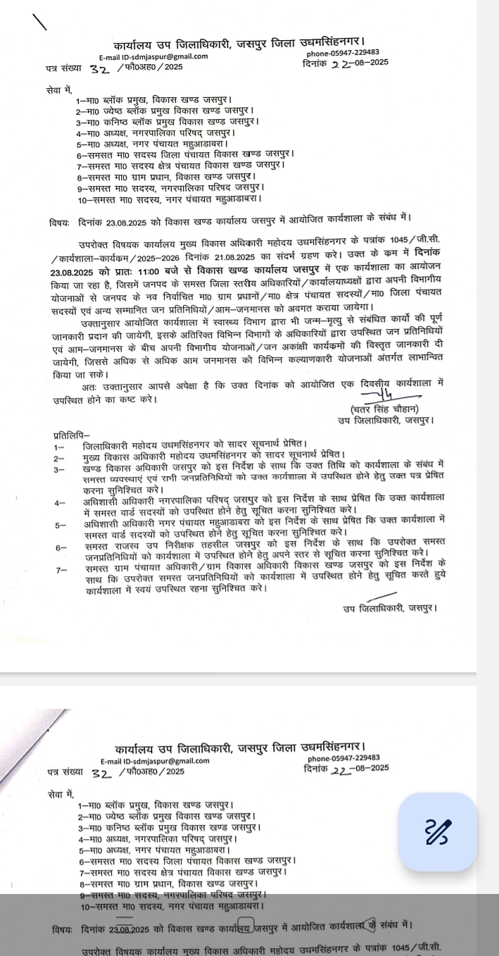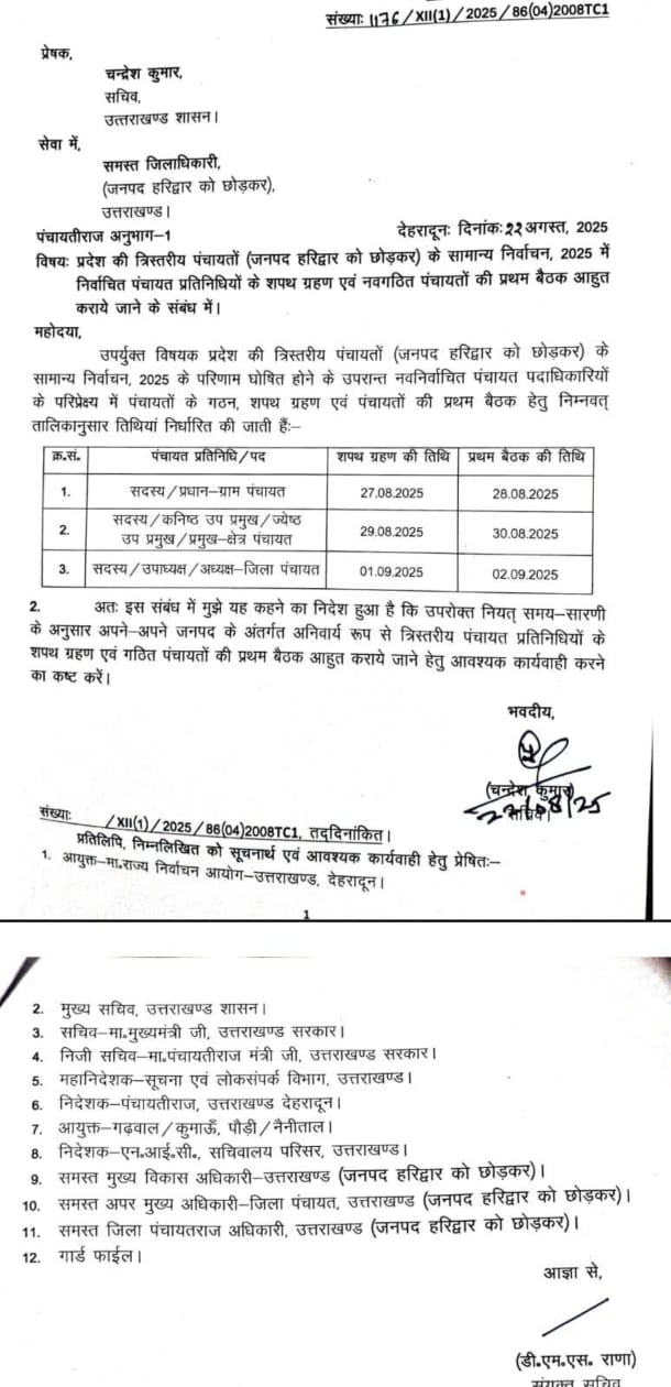 उत्तराखण्ड शासन। सेवा में, समस्त जिलाधिकारी, (जनपद हरिद्वार को छोड़कर), उत्तराखण्ड । पंचायतीराज अनुभाग-1 देहरादूनः दिनांकः २१ अगस्त, 2025 विषयः…