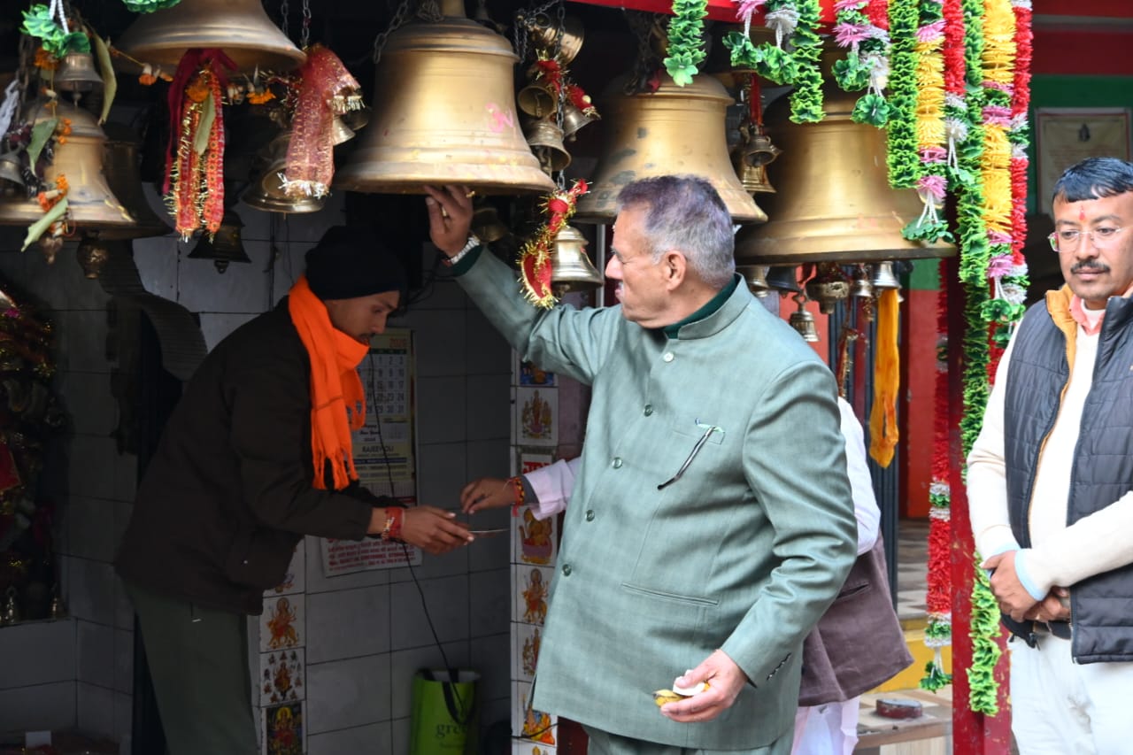 पिथौरागढ़ में गुरना माता के दर्शन कर माँ का आशीर्वाद लेते कैबिनेट मंत्री गणेश जोशी